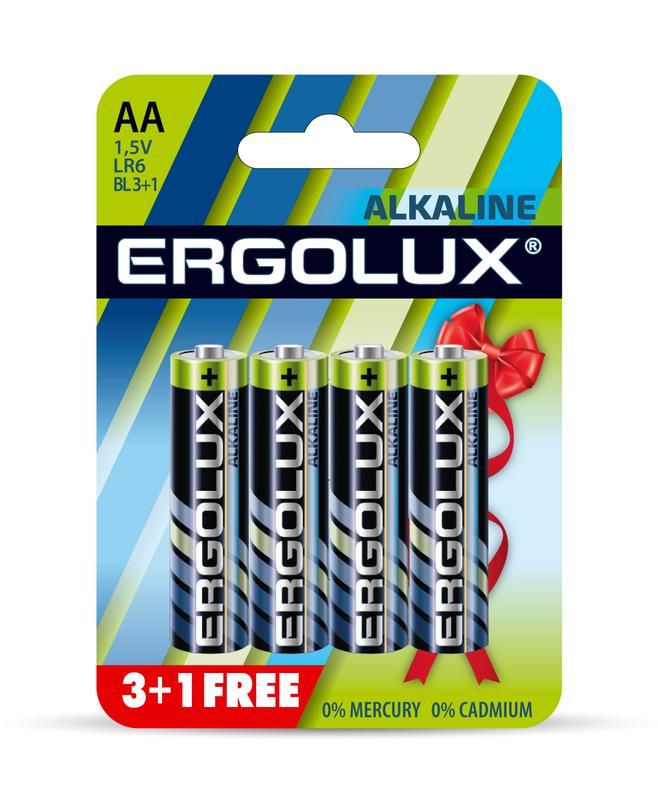 Элемент питания алкалиновый AA/LR6 1.5В Alkaline BL 3+1(FREE) (уп.4шт) Ergolux 12866