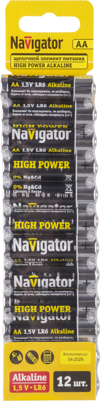 | Элемент питания алкалиновый 93 175 NBT-NPE-LR6-BP12 NAVIGATOR 93175 | 26.02.2026 | 159060 шт. | 232,78 ₽ | уп. 12 шт. | от 12 дней |