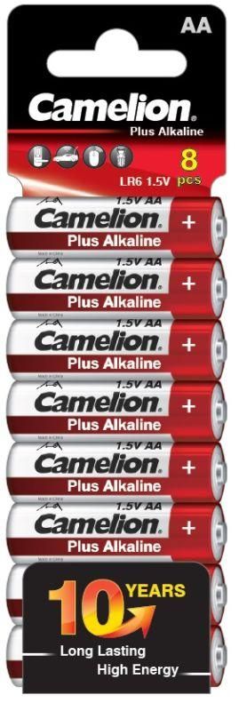 Элемент питания алкалиновый AA/LR6 1.5В Plus Alkaline SP8 от Camelion - надёжная щелочная батарейка для устройств с высоким потреблением энергии. Упаковка из 8 штук обеспечивает запас на длительное использование, а срок хранения до 10 лет делает её удобным решением для дома, офиса и промышленного оборудования.