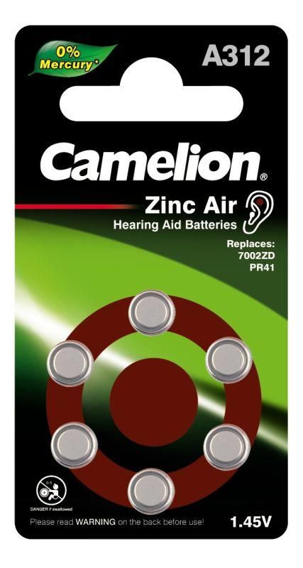 Элемент питания ZA312 Mercury Free A312-BP6 (0%Hg) 1.4В 170мА.ч для слуховых аппаратов BL-6 (блист.6шт) Camelion 12825