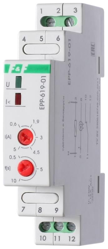 Реле тока EPP-619-02 ( 2-16А; регулир. задержка ; 1 модуль; монтаж на DIN-рейке) F&F EA03.004.014 Евроавтоматика