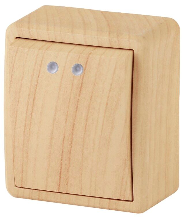 Выключатель одноклавишный наружный (открытой установки) с подсветкой IP20 сосна 10А 250В винтовые зажимы ЭРА Эксперт 11-1202-11 - Б0020659