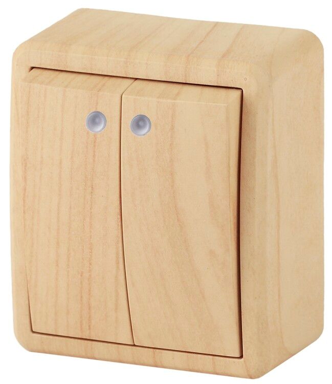 Выключатель двухклавишный наружный (открытой установки) с подсветкой IP20 сосна 10А 250В винтовые зажимы ЭРА Эксперт 11-1205-11 - Б0020668