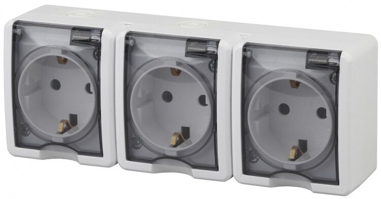 - Три розетки в одном корпусе экономят место и уменьшают количество точек монтажа