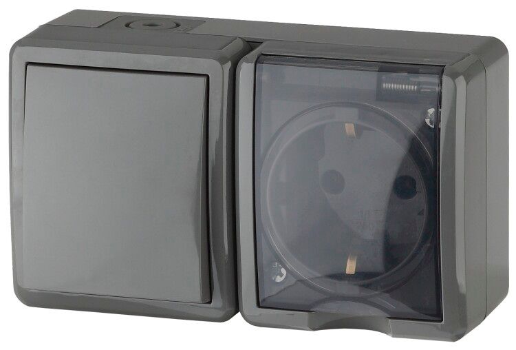 Блок розетка+выключатель 11-7401-03 IP54, 16АХ(10AX)-250В, ОУ, Эксперт, серый (8/80/1280) |Б0020734 | ЭРА