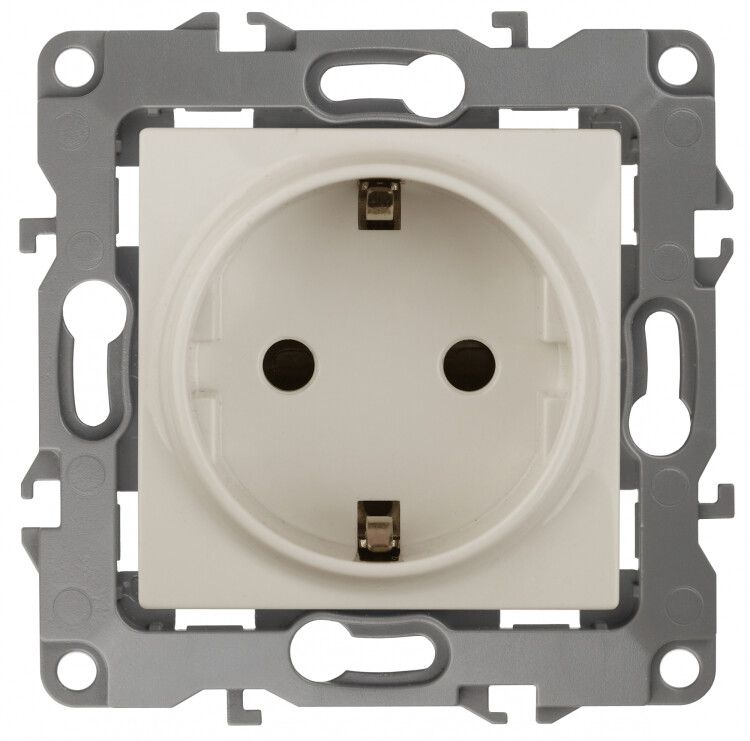 Розетка однофазная скрытого монтажа, в рамку с заземлением без шторок слоновая кость 16А 250В IP20 винтовые клеммы 12-2111-02 Эра 12 - Б0029237