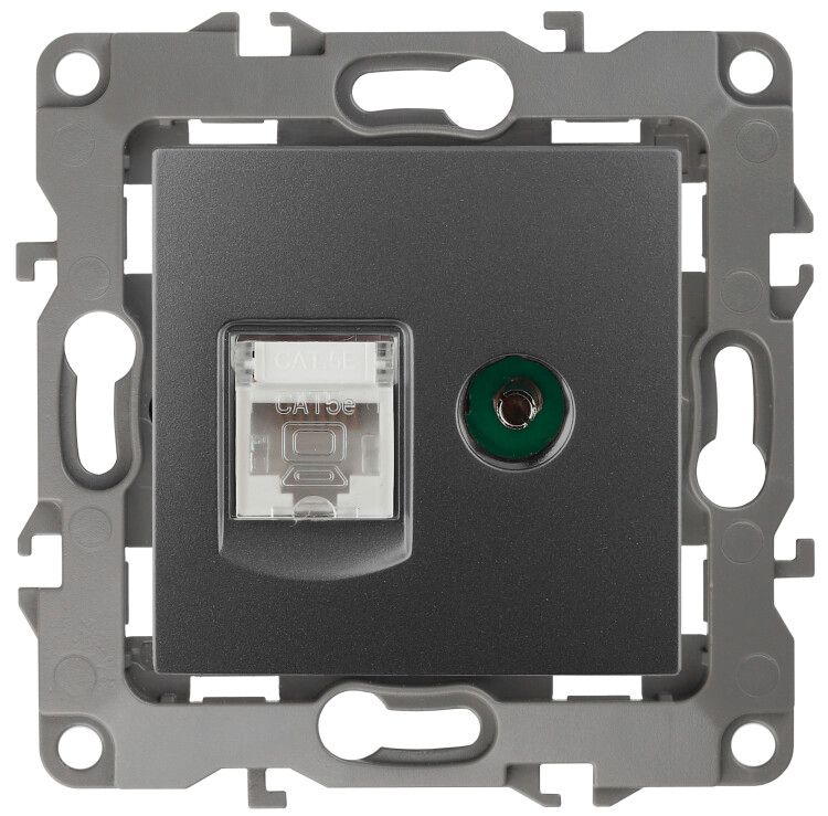Розетка комбинированная RJ45+TV, Эра12, графит, 12-3110-12 - Б0027447