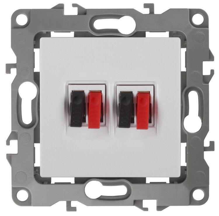 Розетка аудио двойная 12-3112-01 белая, IP20 используется для подключения акустических систем - например, колонок, усилителей или центральных устройств домашнего кинотеатра. Подходит для установки в стены в помещениях с нормальной влажностью: гостиных, спальнях, студиях, конференц-залах. Не предназначена для открытого монтажа или мест с повышенной запыленностью и влажностью.