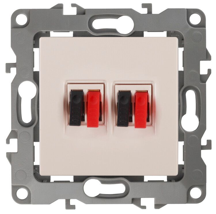 Розетка аудио двойная слоновая кость 12-3112-02 IP20 используется исключительно для подключения акустических кабелей - например, к динамикам, усилителям или центральному аудиоцентралу. Подходит для установки в жилых помещениях, студиях записи, домашних кинотеатрах и офисах с аудиосистемами. Не предназначена для передачи электропитания - только для аналогового аудиосигнала.