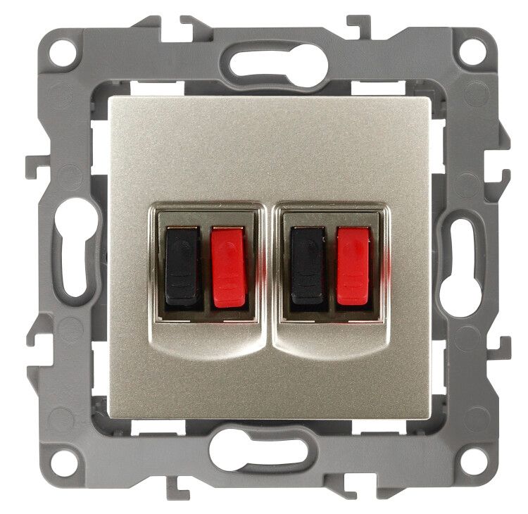 Розетка аудио двойная Эра 12 12-3112-04 шампань IP20 используется для подключения акустических устройств: колонок, усилителей, сабвуферов, домашних кинотеатров. Подходит для установки в жилых помещениях, студиях звукозаписи, офисах и других местах, где требуется чистый и организованный вывод аудиосигнала. Модель не предназначена для передачи питания - только для аналогового аудиосигнала.