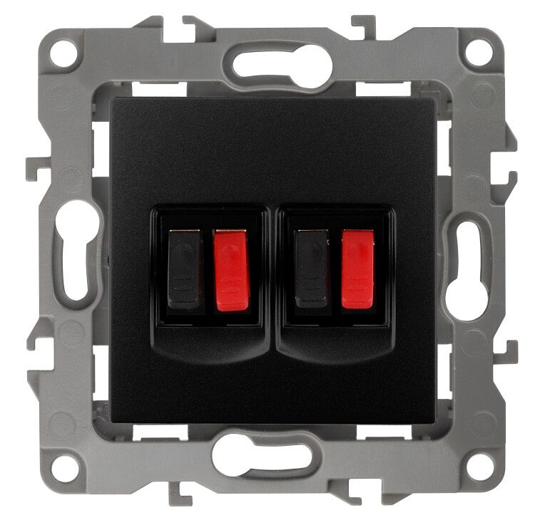 Розетка аудио двойная Эра 12 12-3112-05 IP20 - это скрытно устанавливаемое устройство для подключения двух акустических систем через единый точечный выход. Механизм с компенсацией натяжения и суппортом обеспечивает надёжное крепление в стене, снижает риск повреждения кабеля, а матовая антрацитовая накладка гармонично впишется в интерьеры с минимализмом.