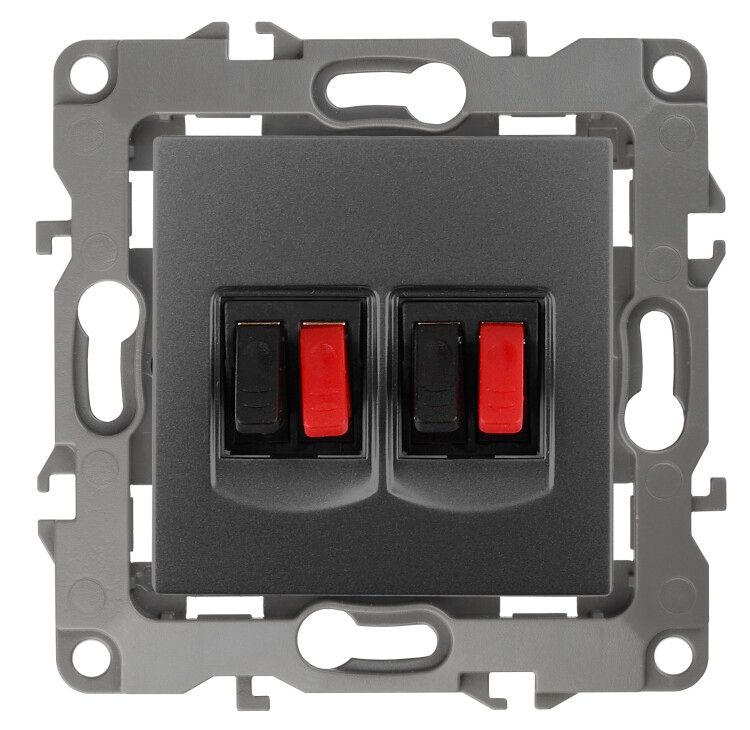 Розетка аудио двойная графит 12-3112-12 IP20 предназначена для подключения акустических кабелей - например, к динамикам, усилителям, центральным панелям AV-систем. Подходит для установки в жилых помещениях, студиях записи, домашних кинотеатрах, офисах и других местах, где требуется эстетично спрятать провода и минимизировать помехи. Модель не предназначена для передачи питания - только для аналогового аудиосигнала.