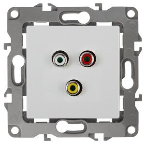 Розетка RCA Эра 12 12-3113-01 используется для подключения устройств с аналоговым AV-выходом: DVD-проигрывателей, тюнеров, видеомагнитофонов, игровых приставок, усилителей и камер наблюдения. Три гнезда позволяют одновременно подключить стереозвук (L/R) и видео (Y/CVBS). Устройство предназначено для внутренней установки в стеновые ниши, подходит для жилых помещений, офисов и малых мастерских.