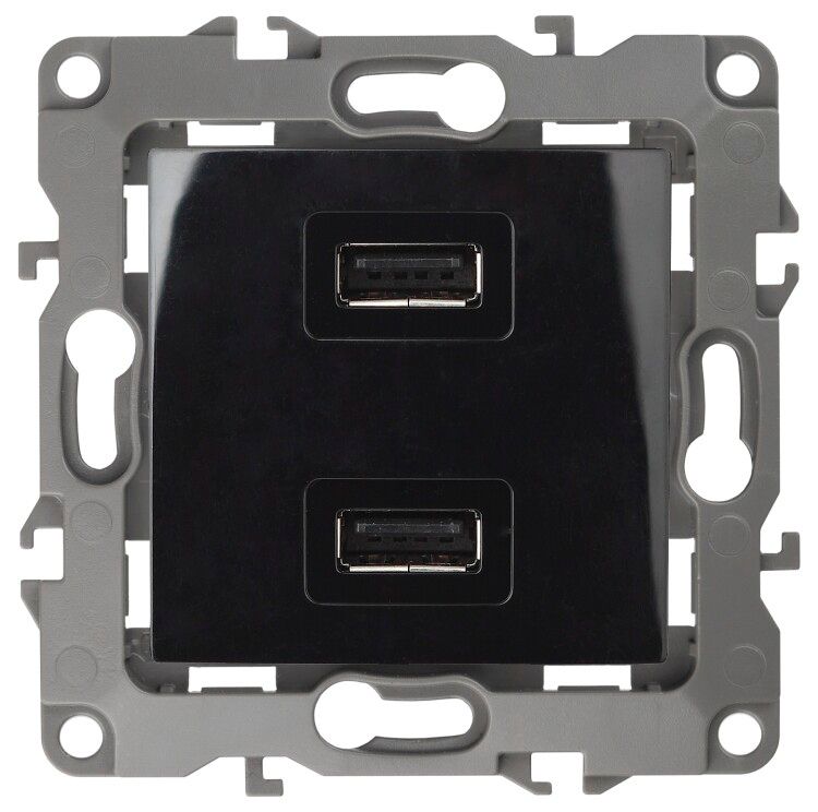 Устройство зарядное USB 12-4110-06 устанавливается вместо стандартной розетки в подрозетник глубиной не менее 40 мм. Крепление осуществляется за счёт распорных лапок и винтов - совместимо с типичными металлическими или пластиковыми подрозетниками. Для работы требуется подключение к сети 230 В. Нагрузка на каждый USB-порт - до 2,1 А, суммарная нагрузка на устройство - до 2,1 А (оба порта работают одновременно, но ток распределяется между ними автоматически).