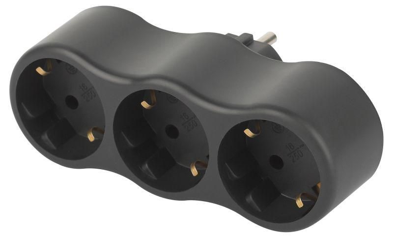Эра Б0059723 Разветвитель электрический SPx-3e-B на 3 розетки с заземл 16А черн
