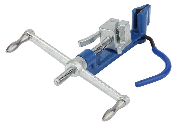 Инструмент для натяжения и резки ленты OPV (10/240) - это удобный и эффективный инструмент, предназначенный для использования при монтаже кронштейнов и крюков на металлических, деревянных или железобетонных опорах. Он обеспечивает быстрое и надежное натяжение бандажной ленты, сокращая время и усилия, необходимые для этой операции.