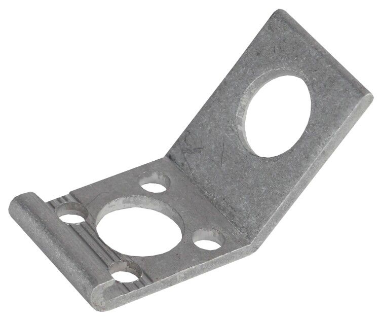 Кронштейн анкерный CA25 крепится к опоре ЛЭП с помощью монтажной ленты F20, специального болта или шпилек - все варианты предусмотрены конструкцией. Отсутствие отверстий под трубу или кабель означает, что он служит только как крепёжный элемент для зажимов, а не как направляющая для проводов. Диаметр трубы не указан - это нормально, поскольку изделие не предназначено для прохода через него.