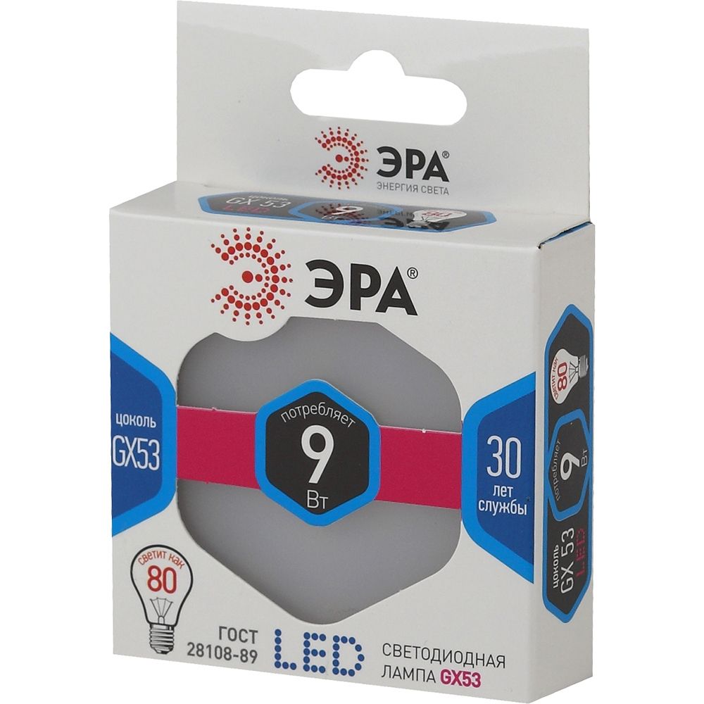 Лампа светодиодная 9 ватт GX53 4000К нейтральный свет от бренда ЭРА (артикул б0020595) - компактный источник света для встраиваемых светильников с цоколем GX53. Подходит для замены галогенных ламп в точечном освещении, обеспечивает равномерный белый свет без мерцания и экономит энергию.