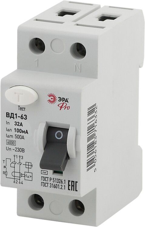 Устройство защитного отключения (УЗО) эл-механическое ВД1-63 1P+N/2P 32А 100мА от бренда ЭРА предназначено для защиты людей от поражения электрическим током и предотвращения пожаров из-за утечек тока. Это надёжное эл-механическое УЗО работает без внешнего питания и подходит для установки в распределительных щитах жилых и промышленных объектов.