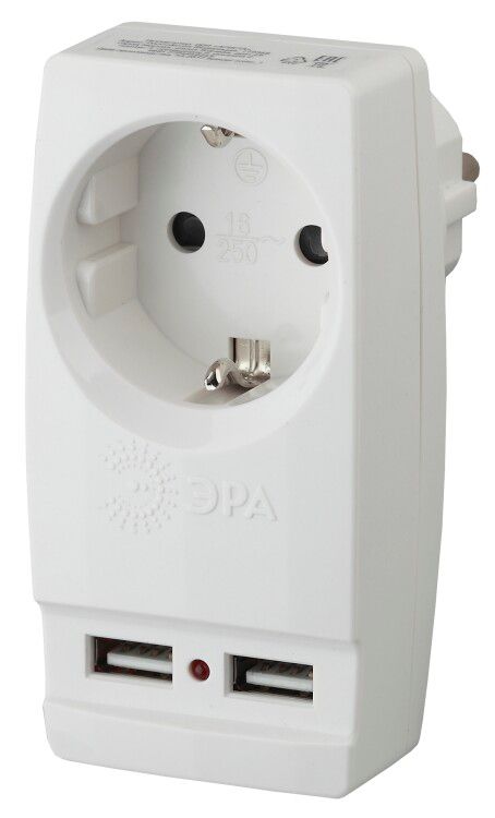 Адаптер ЭРА SP-1e-USB-W используется там, где нужно расширить количество доступных точек подключения. Он сочетает одну еврокрозетку с заземлением и два USB-порта, позволяя одновременно питать устройства различного типа: от утюга и фена до смартфонов и планшетов. Подходит для дома, офиса, гостиницы, мастерской - любых помещений с постоянной сетью 220 В.