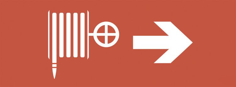 - На стене рядом с выходом из помещения - наклейка на светильнике SSA-101 показывает, что пожарный кран находится справа