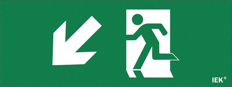 - Тип пиктограммы: путь эвакуации (направление вниз влево)