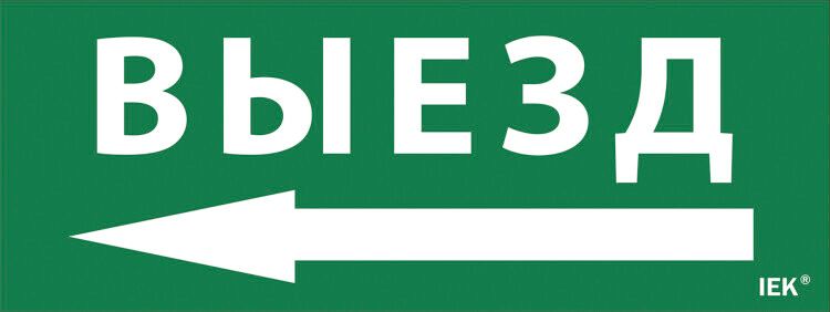 Этикетка самоклеящаяся 'Выезд/стрелка налево' ДПА IP20/54 240х90мм от IEK - это информационная наклейка для обозначения направления эвакуации на аварийных светильниках серий LIGHTING. Простой, но важный элемент системы безопасной эвакуации, который легко монтируется и хорошо виден даже в условиях ограниченного освещения.