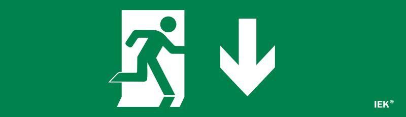 - Пиктограмма: символ "Стрелка вниз", соответствующий требованиям к знакам эвакуационной направленности