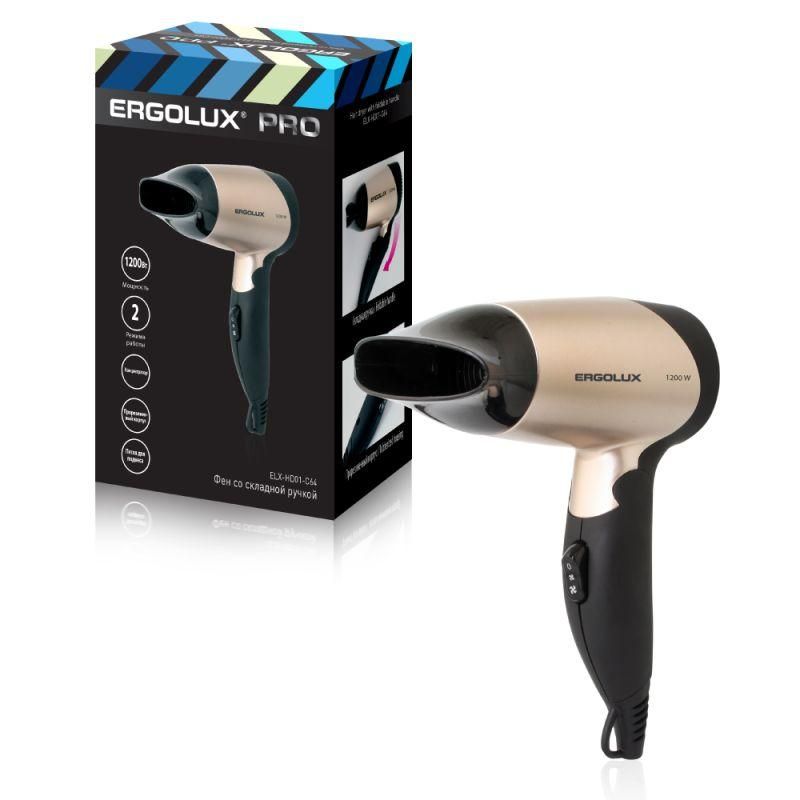 Фен ELX-HD01-C64 со складной ручкой 1200Вт 220-240В Ergolux 13129