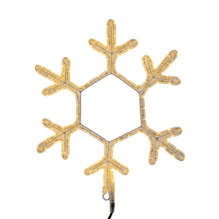 Фигура светодиодная Снежинка тёплый белый 45x38 см 12Вт 220В IP65 дюралайт NEON-NIGHT предназначена исключительно для декоративного освещения. Подходит для установки на фасадах жилых домов, дач, торговых центров, офисов, кафе, витрин и новогодних ёлок. За счёт высокой степени защиты IP65 и уличного исполнения может использоваться вне помещений даже при сильном снегопаде, дожде или запылённой среде. Цвет свечения - тёплый белый - создаёт уютную атмосферу без резкости, что особенно важно для вечернего и ночного оформления.