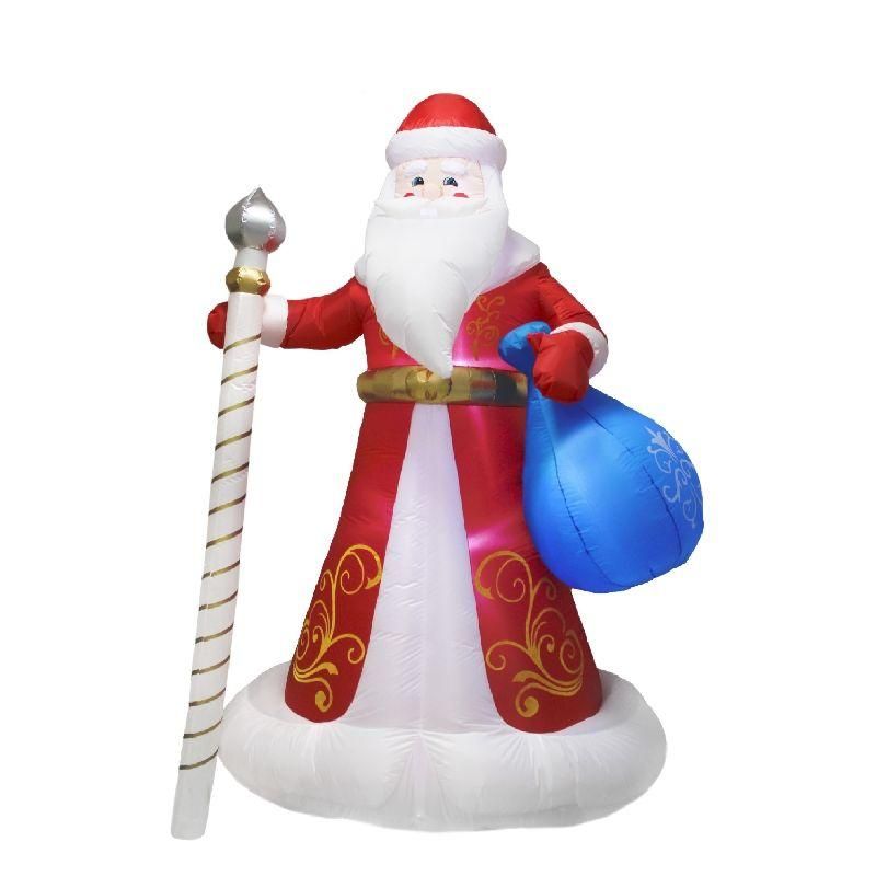 Фигура надувная 3D Дед Мороз с подарками требует ровной поверхности для установки. Установка занимает 5–10 минут: