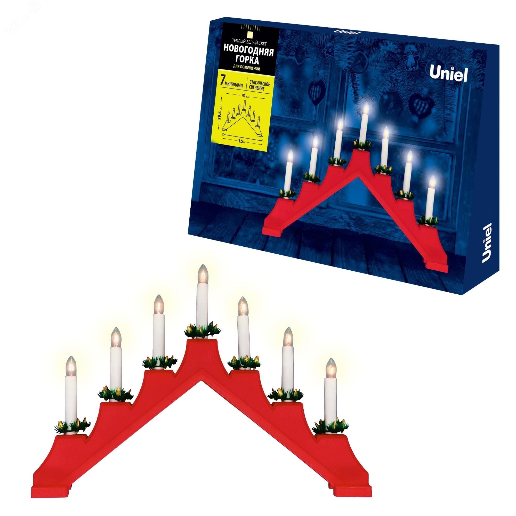 Фигура Новогодняя горка 39,5х30,5см 7 миниламп накаливания Теплый белый свет Корпус красный Материал пластик UDL-L7101-007/SWA/WW RED BRIDGE - UL-00007387 Uniel