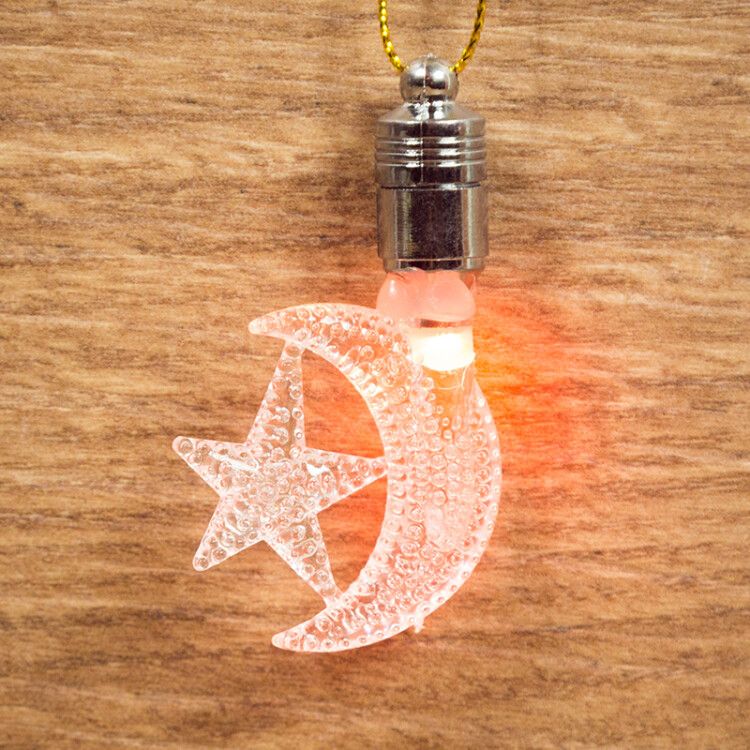 Фигурка подвесная "Месяц" RGB 8*5,5 см - это оригинальное украшение, которое создаст праздничное настроение в вашем интерьере. Она выполнена из прозрачного пластика в виде месяца с пятиконечной звездочкой. Блок питания находится в металлической гильзе в верхней части фигурки.