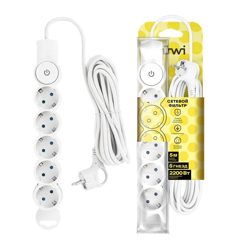 Фильтр сетевой 5х5м с/з со шторками с выкл. 2200Вт 10А бел. Duwi 32577 2