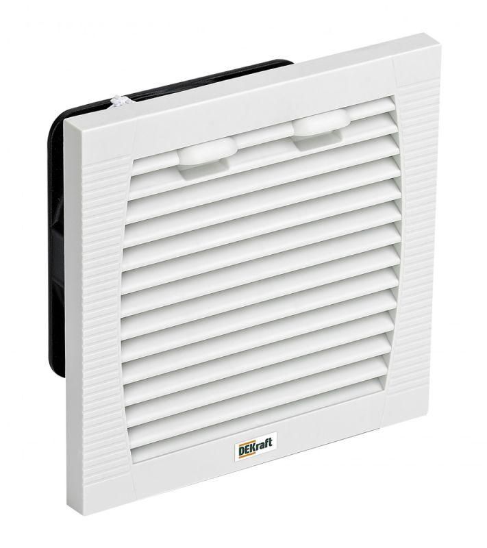 Фильтрующий вентилятор DEKRAFT 35006dek - устройство для принудительной циркуляции воздуха внутри электрошкафов, обеспечивающее охлаждение и защиту от пыли благодаря встроенному фильтру и степени защиты IP55. Подходит для установки в условиях с внешней температурой до 35 C.