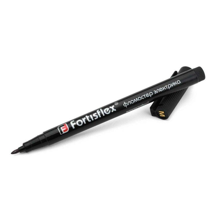 Фломастер электрика маркировочный ФМ-1,0 черный от Fortisflex и КВТ - перманентный маркер с водостойкими чернилами для долговременной маркировки проводов, бирок и оборудования в условиях повышенной влажности, температурных колебаний и внешнего воздействия.