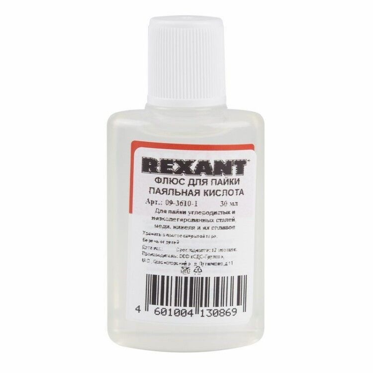 | Флюс для пайки ПАЯЛЬНАЯ КИСЛОТА 30 мл инд. упак. Rexant 09-3610-1 | 25.02.2026 | 938 шт. | 86,77 ₽ | шт. | от 7 дней |