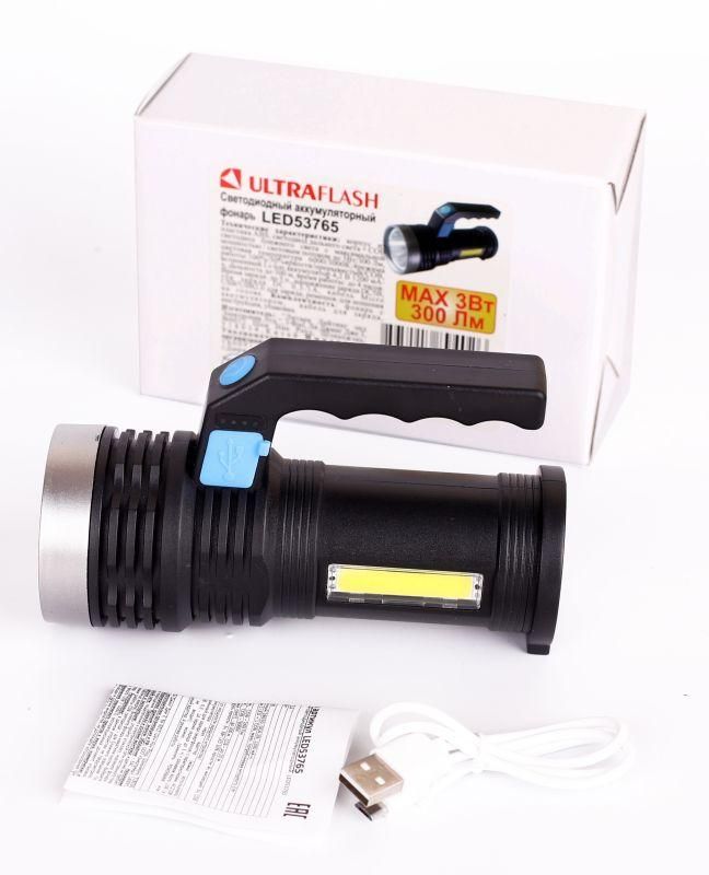 Фонарь аккумуляторный LED53765 2LED 3Вт 4 режима USB аккум. 4В черн. (бокс) Ultraflash 14665