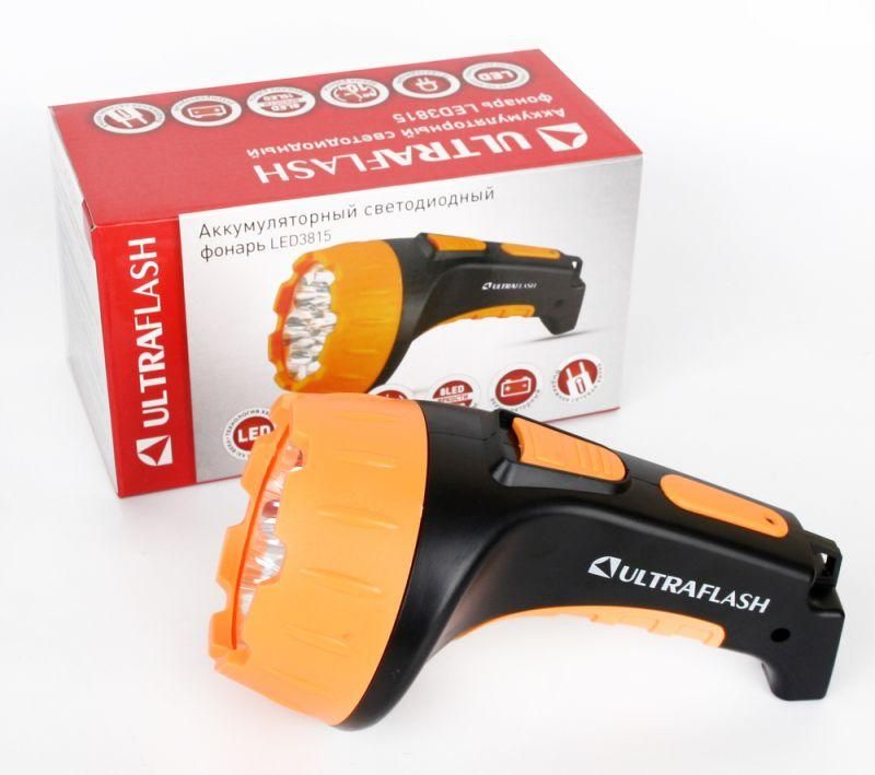 Фонарь аккумуляторный LED3815 15LED 2 режима аккум. SLA 220В пластик. черн./желт. (кор.) Ultraflash 9217