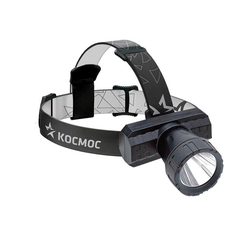 Фонарь КОСМОС KocAcHead3W, 3Вт ХРЕ, литий 1000mAh, зарядка от micro USB, шнур в комплекте. Ударопрочность - нет.