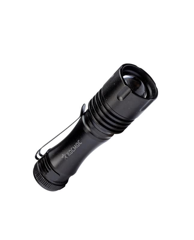 Фонарь ручной 1Вт LED/с линзой/с зумом/1xAA/корпус алюминий/зажим для крепления, КОСМОС - KOS105B