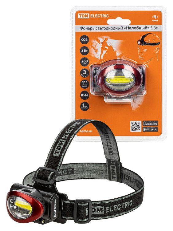 Фонарь светодиодный "Налобный" 3 Вт COB, 260 лм, бат. 3*AAA | SQ0350-0071 TDM