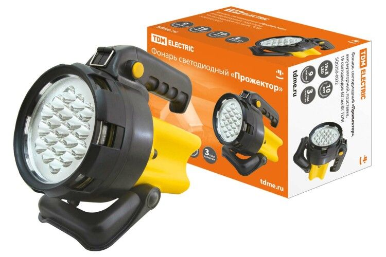 Фонарь прожекторный 19хLED аккумулятор 6В34*ч, подставка | SQ0350-0022 TDM