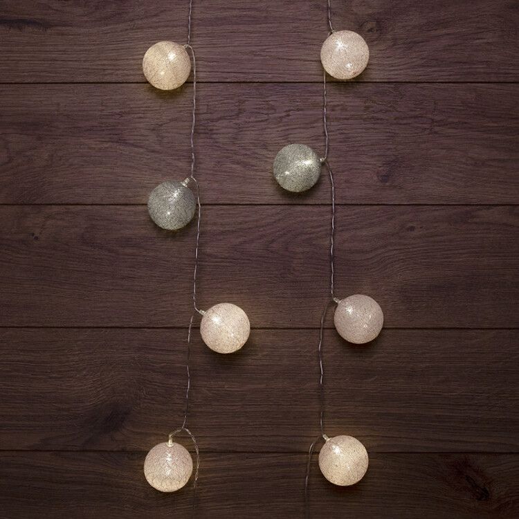 Гирлянда имеет общую длину 3.5 метра и включает в себя 20 светодиодных фонариков диаметром 6 см, выполненных из хлопковых нитей. Они мягко подсвечиваются и создают атмосферу уюта и комфорта.