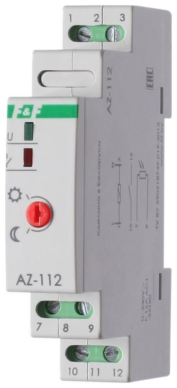 Фотореле AZ-112 Плюс (выносной фотодатчик монтаж на DIN-рейке 1 модуль 230В 16А 1перекл. IP20) F&F EA01.001.014 Евроавтоматика
