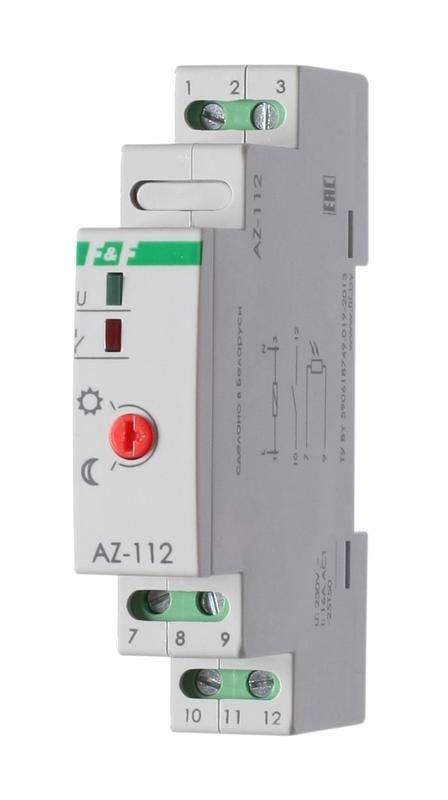 Фотореле AZ-112 (выносной герметичный фотодатчик монтаж на DIN-рейке 1 модуль 230В 16А) F&F EA01.001.013 Евроавтоматика