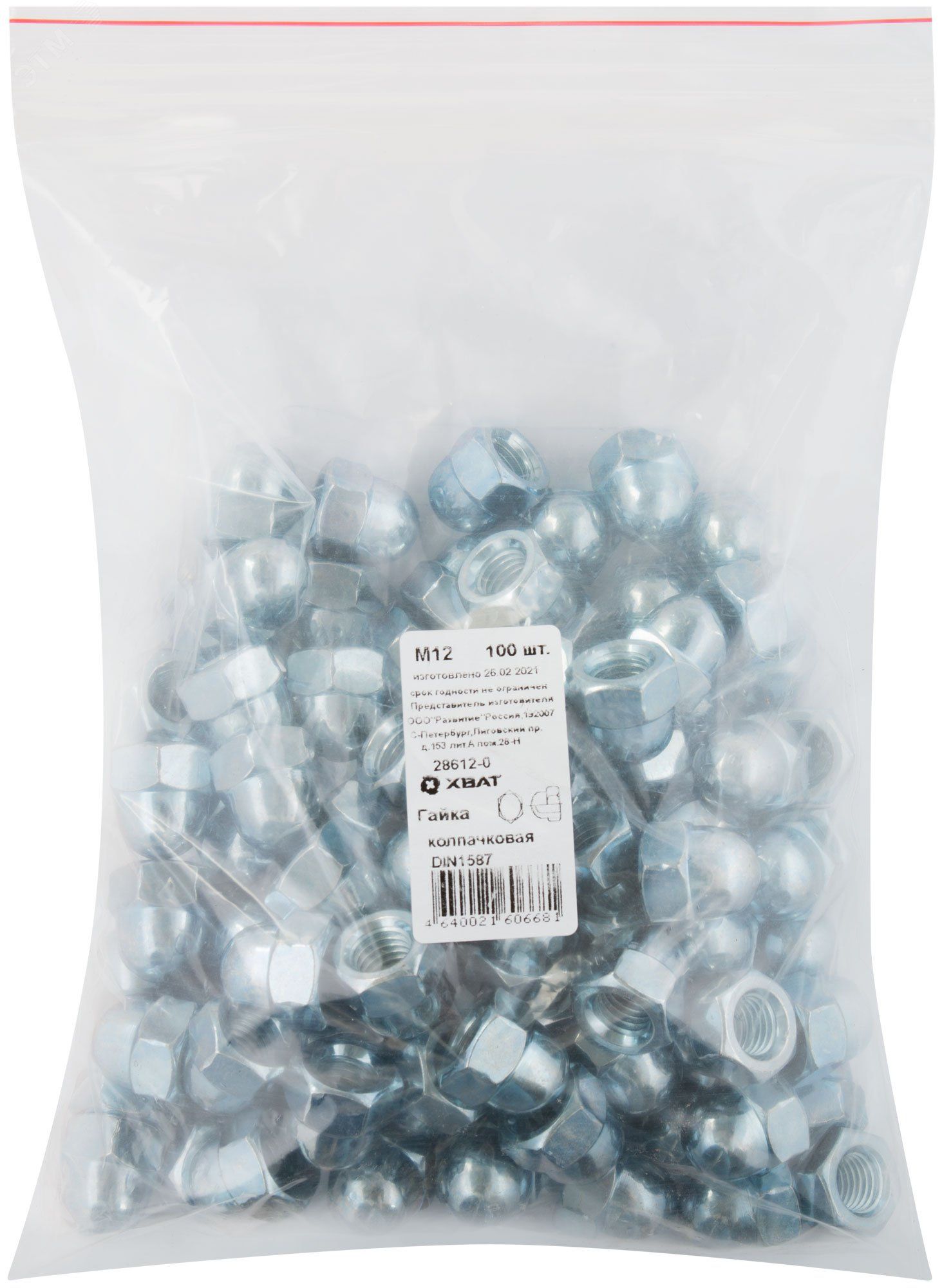 Гайка DIN1587 М12 колпачковая оцинкованная (100 шт) - 28612-0 Хортъ