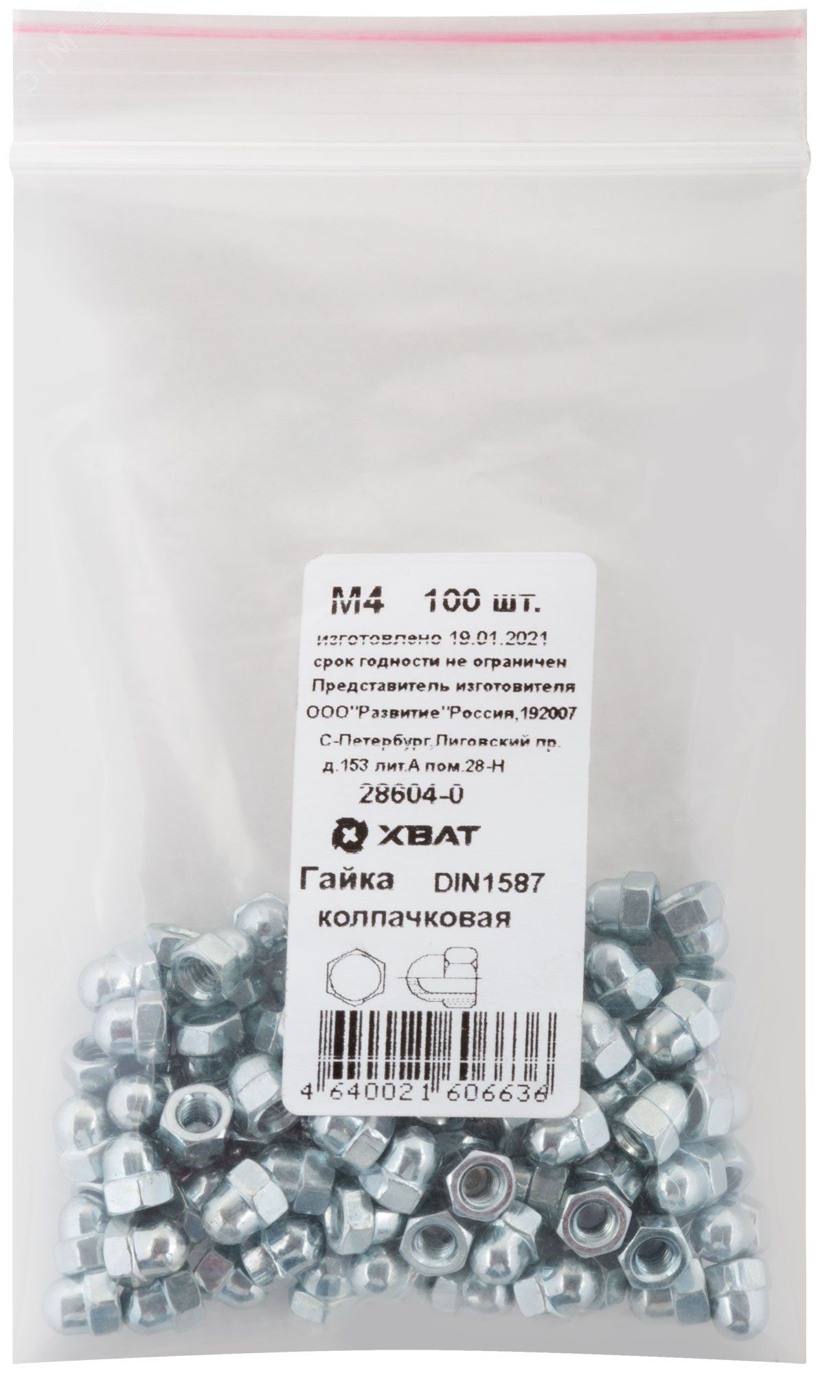 Гайка DIN1587 М4 колпачковая оцинкованная (100 шт) - 28604-0 Хортъ