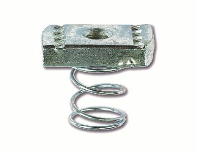 Гайка М6х40 для подвешивания профиля с удлиненной пружиной от бренда DKC (ДКС), артикул cm160600, предназначена для надежного крепления консолей и подвесов к С-профилю в кабеленесущих системах серии M5 Combitech.