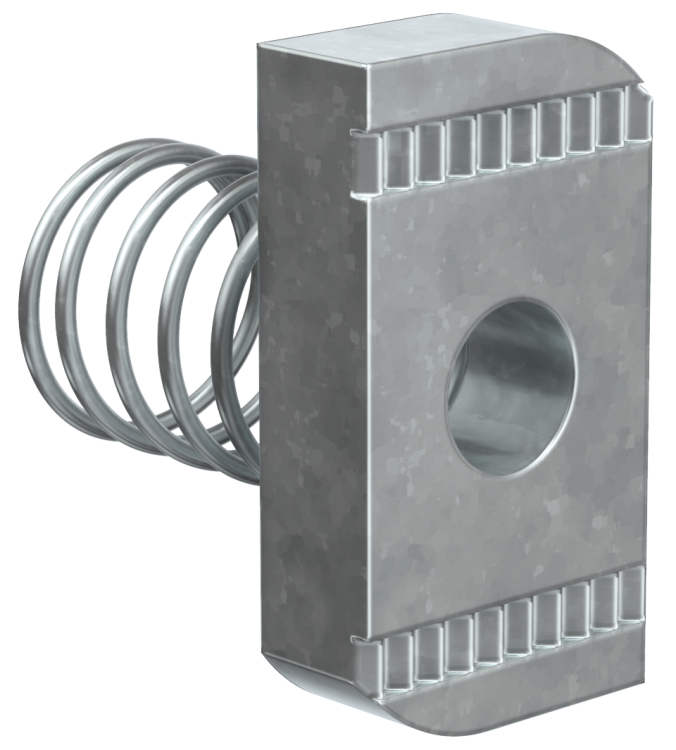 Гайка канальная с пружиной М10х40 от IEK (артикул cmz11-gk-10) - это надёжный крепёжный элемент для сборки STRUT-систем и фиксации кабельных лотков на консолях. Уникальная комбинация гайки и пружины обеспечивает удержание нагрузки даже при вибрациях, снижает риск самопроизвольного ослабления соединений.